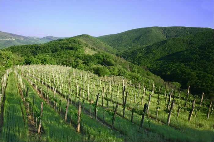 Slava vojvodine Kranjske. Sulle posizioni più esposte a meridione si coltivano soprattutto le uve nere Barbera e Merlot; tra le uve bianche merita una speciale menzione il vitigno autoctono Zelen (Verde).