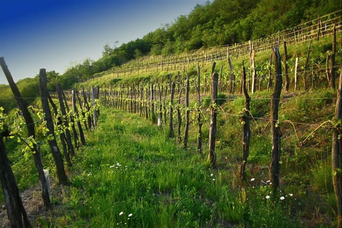 Tutte le viti vengono allevate con il metodo Guyot semplice, che prevede un singolo tralcio lasciato per frutto. Esperienza, dedizione, posizioni ottimali, carichi limitati e il tipico terreno composto di marne e arenarie (Flysch) permettono la coltivazione di uve eccellenti.